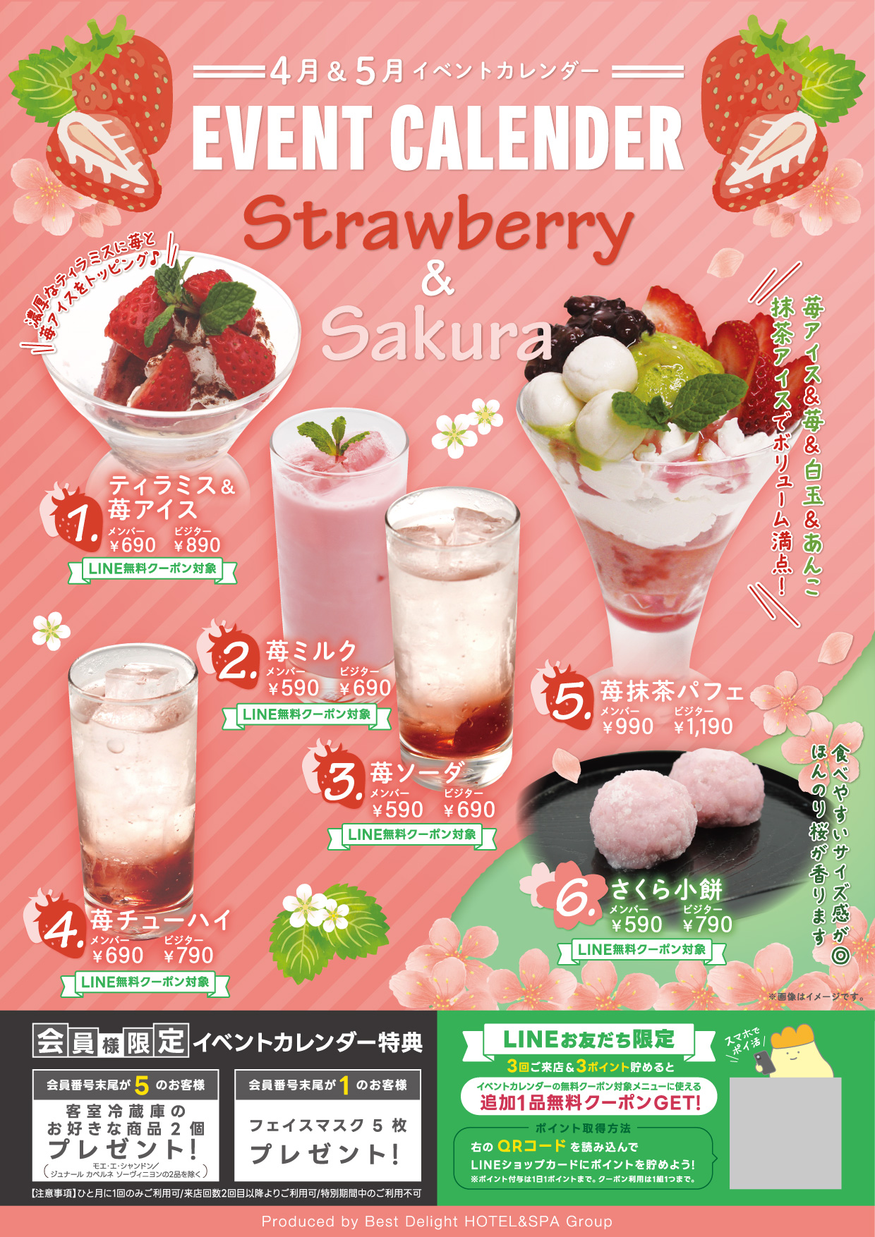 フレッシュな苺のパフェや苺ソーダ、桜の小餅など春めいたラインナップをご用意!見ているだけでも可愛いスイーツたちをぜひご賞味ください♪